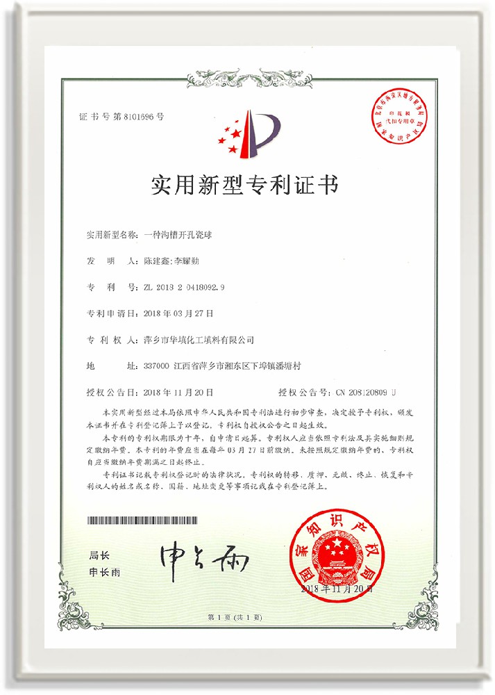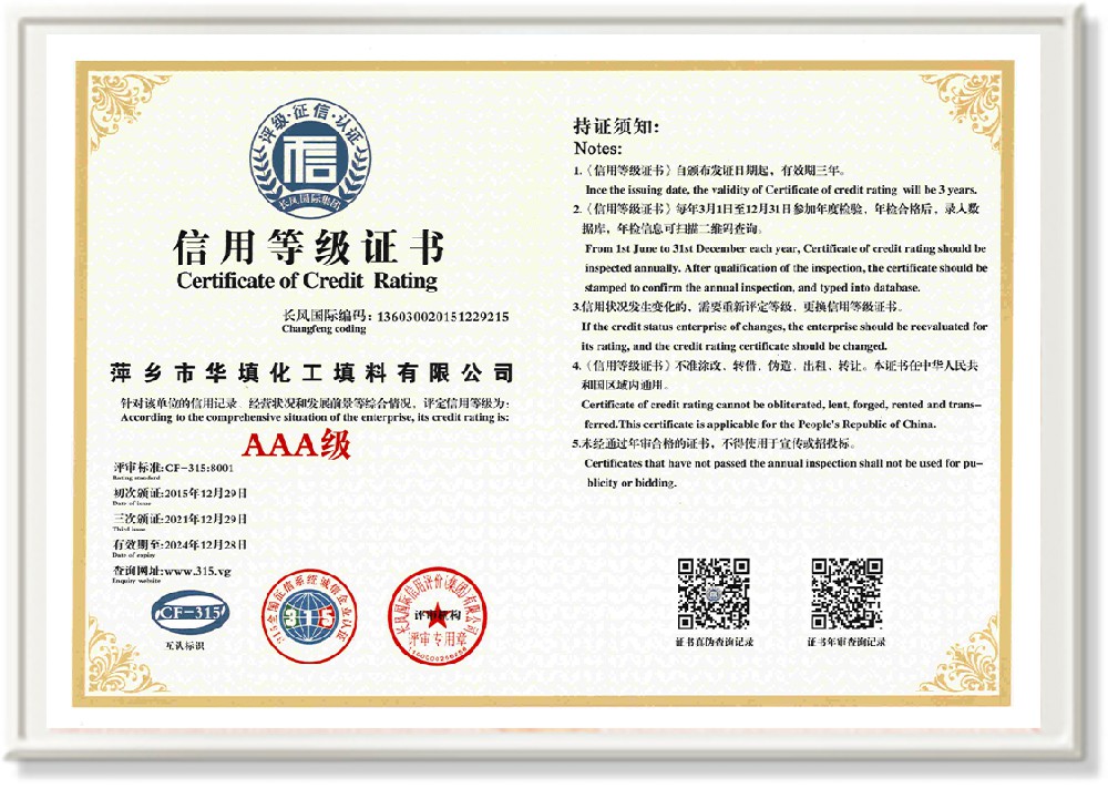 萍鄉(xiāng)市華填化工填料有限公司,位于320國道、109國道、浙贛鐵路、昌金高速公路貫穿其中,交通便利,是江西西部一顆燦爛明珠,創(chuàng)建于20世紀70年代初期,是中國石油天然氣股份有限公司“能源一號網(wǎng)”會員企業(yè)、中國石化物資采購電子商務(wù)網(wǎng)絡(luò)和中國海洋石油總公司采辦業(yè)務(wù)系統(tǒng)成員單位,是上海大學江西材料基因組工程產(chǎn)業(yè)研究院工業(yè)陶瓷產(chǎn)業(yè)創(chuàng)新聯(lián)盟基地,且通過ISO9001:2015質(zhì)量管理體系、ISO14001:2015環(huán)境管理體系、ISO45001:2018職業(yè)健康安全管理體系認證的化工填料生產(chǎn)企業(yè)。公司擁有陶瓷、塑料、金屬填料、催化劑、活性氧化鋁、分子篩等產(chǎn)品生產(chǎn)線,現(xiàn)有固定資產(chǎn)3616萬元,占地面積3.8萬平方米。公司具有悠久的生產(chǎn)歷史、雄厚的技術(shù)力量和先進的生產(chǎn)工藝設(shè)備,可生產(chǎn)工業(yè)瓷球(支撐劑)、陶瓷、金屬、塑料質(zhì)的規(guī)整、散堆化工填料及分子篩、催化劑、生化濾料、活性氧化鋁、石化助劑、活性炭、環(huán)保材料、耐火材料等系列的200多種規(guī)格型號產(chǎn)品。